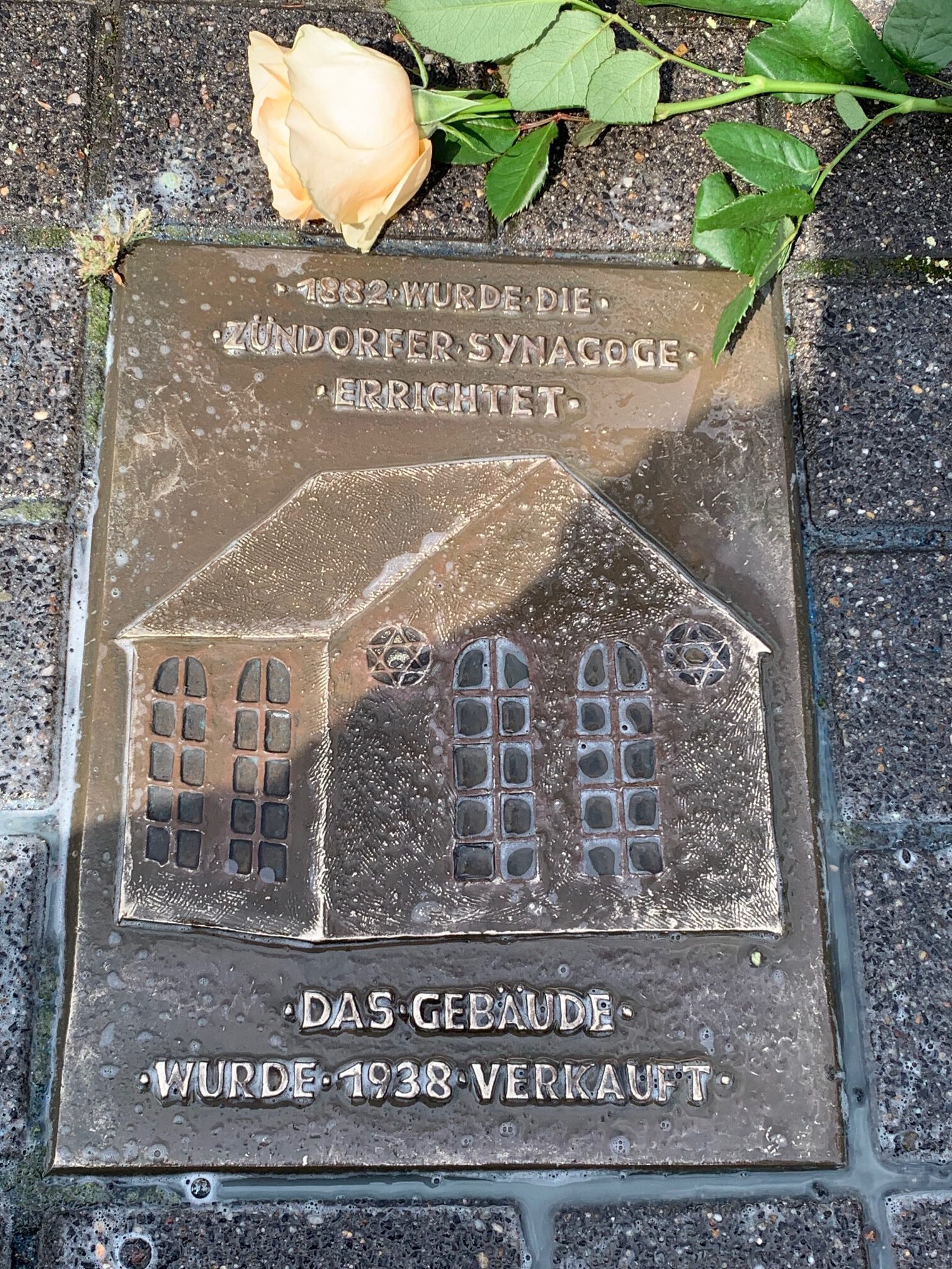 Bodenplakette zur Erinnerung an die Synagoge in Zündorf