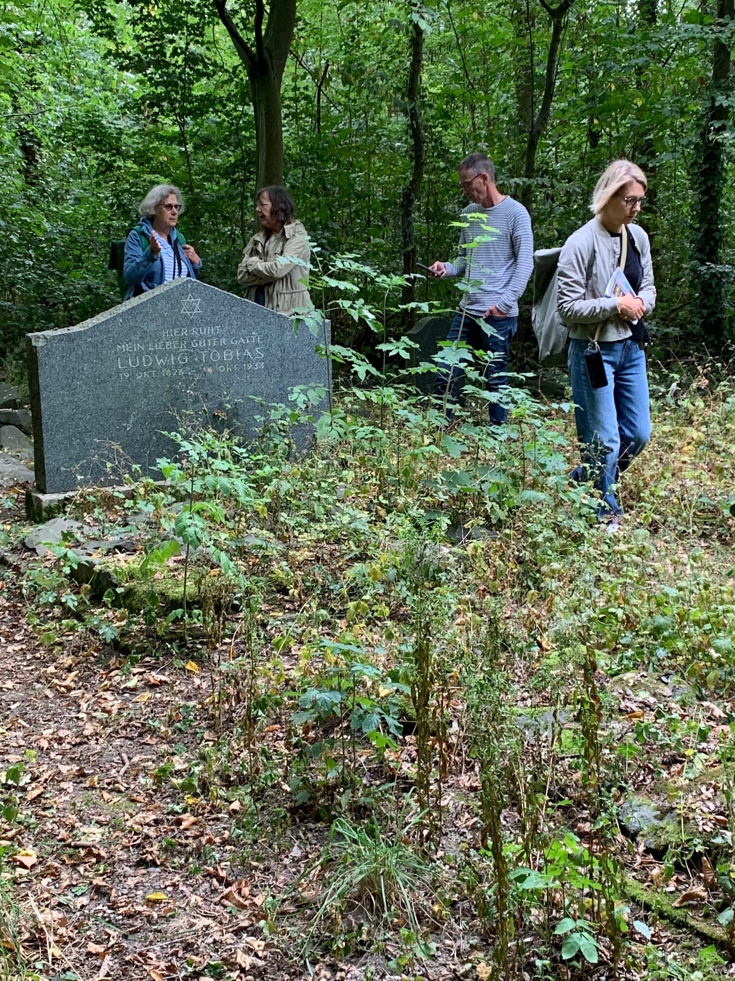 Irmgard, Helga, Dirk und Kirsten auf dem jüdischen Friedhof in Zündorf